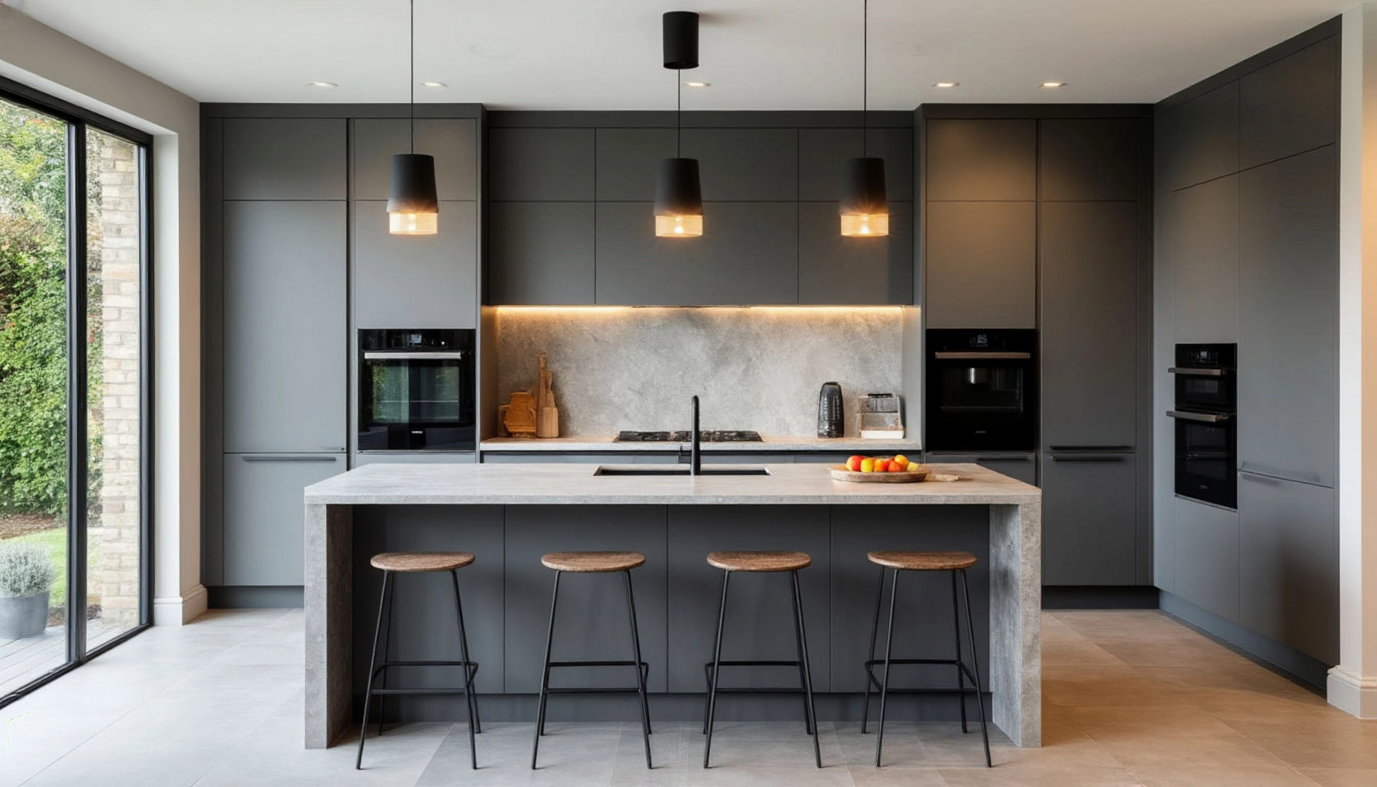 Особое внимание стоит уделить текстуре материалов. Матовый пластик или лаконичный МДФ под шелковистое покрытие — всё выглядит дорого и современно, но при этом остаётся практичным. От прикосновения к поверхностям создаётся ощущение гладкости и тепла, а визуально кухня производит впечатление цельного дизайнерского объекта.