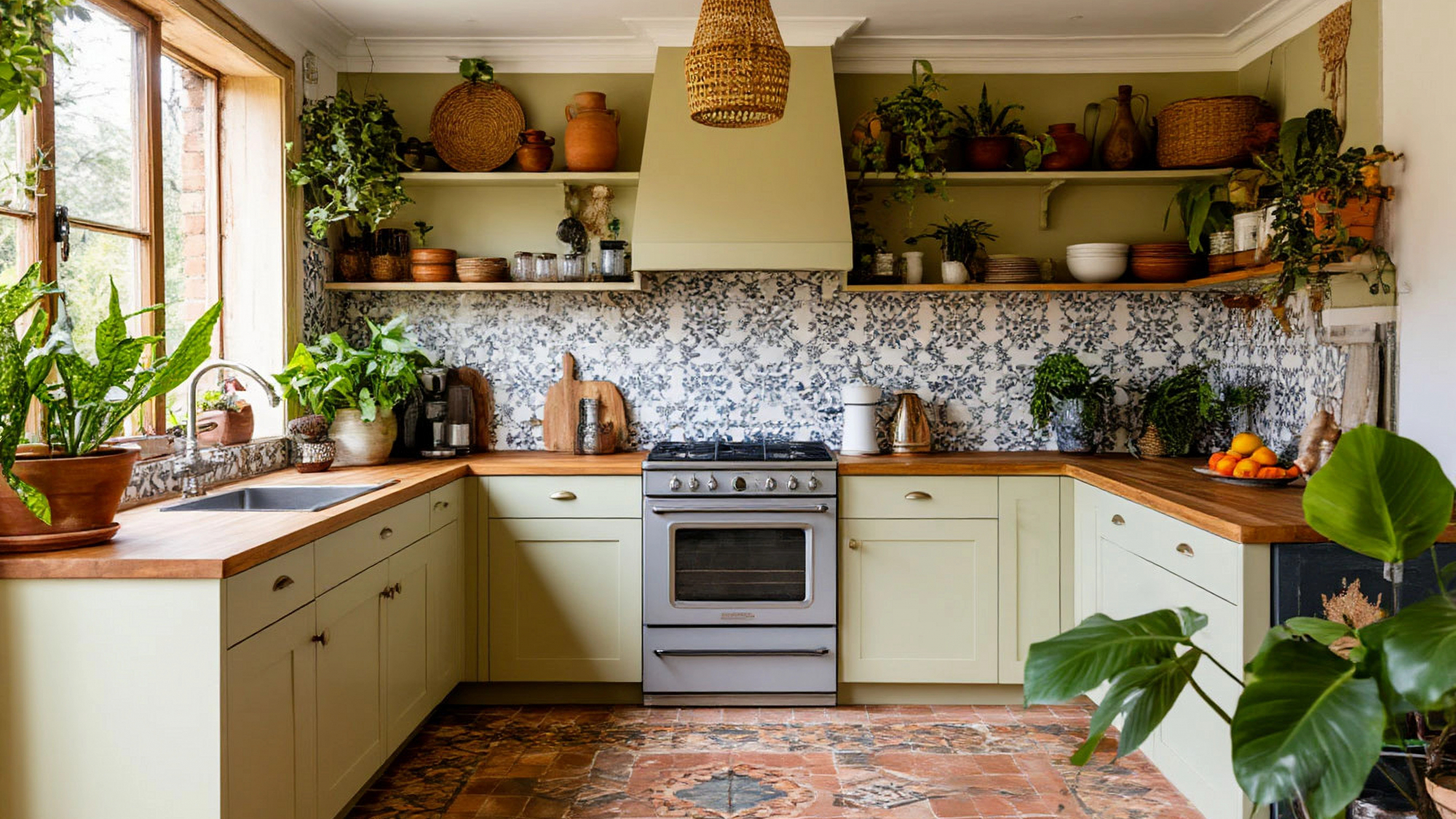 Модель "Олива" выстраивается вокруг идеи природной гармонии. Фасады выполнены в приглушённом оливковом тоне с тёплым подтоном, который можно описать как мягкий зелёно-бежевый, пыльно-зелёный или оливково-молочный. Этот цвет не утомляет глаз, не перетягивает на себя внимание и при этом остаётся выразительным, создавая фон для текстур дерева, керамики, растений и текстиля. В условиях бохо-интерьера такой оттенок становится универсальной основой, позволяя легко менять настроение кухни за счёт декора, посуды и аксессуаров, не нарушая общей целостности пространства.
