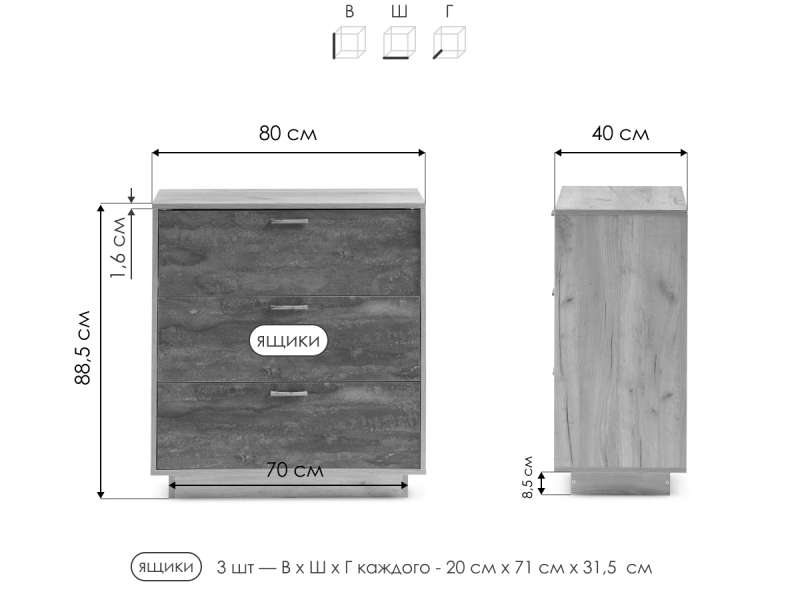 Комод Эго К-3 на подиуме дуб крафт золотой / камень темный (80x40,8x88,3).