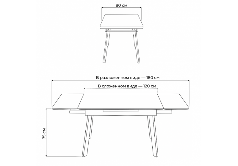 Керамический стол Норман 120(180)х80 carmen light grey / черный (80x75)