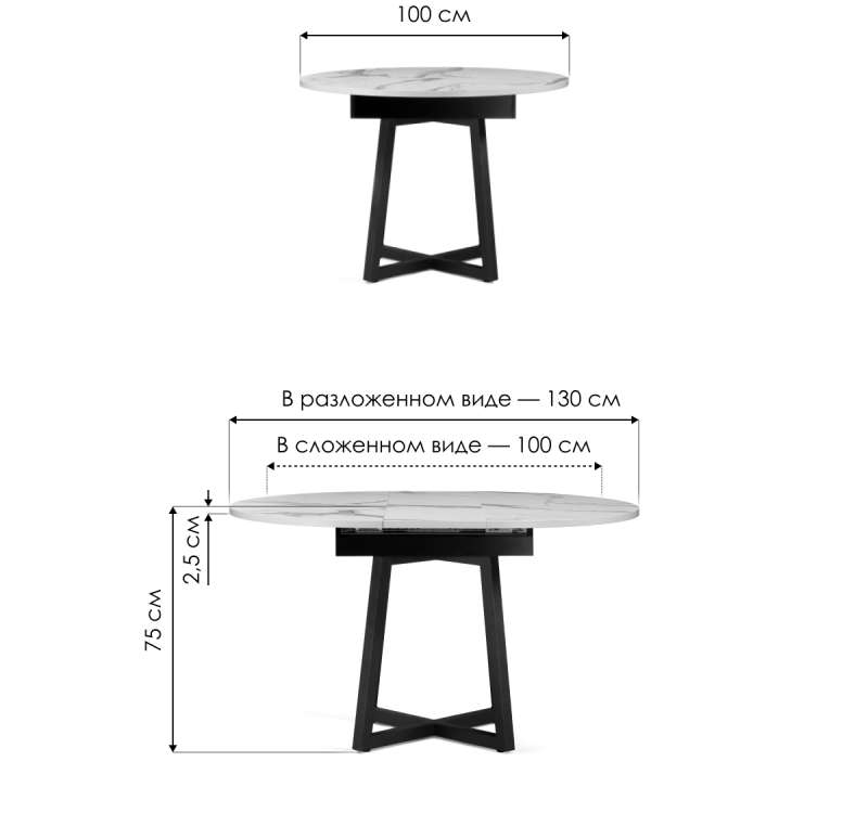 Стол деревянный Регна 100(130)х100х75 черный / белый (100x75).
