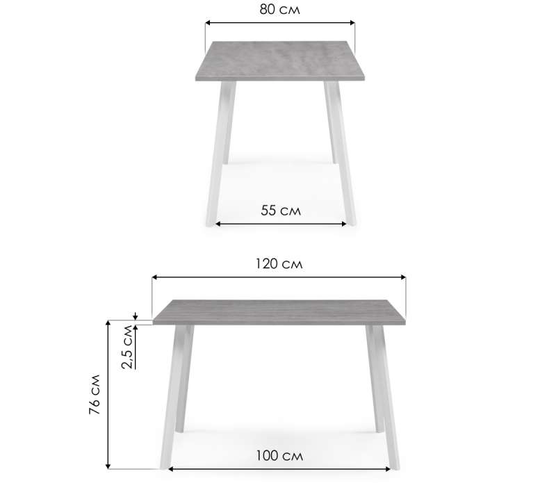 Стол деревянный Тринити Лофт 120х80х75 25 мм бетон / белый матовый (80x75).