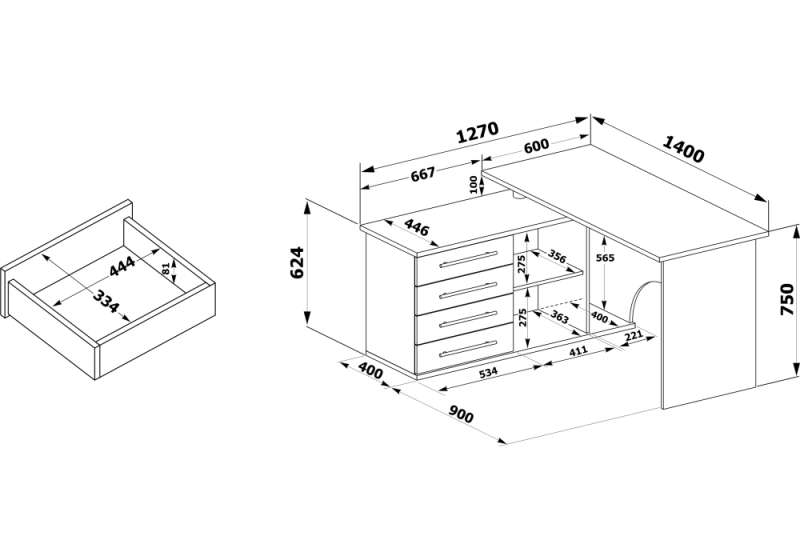 Компьютерный стол КСТ-109Л 127х140х75 левый венге (140x75).
